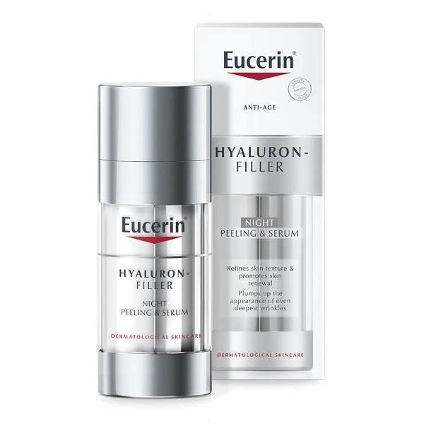 * Apply once a day, in the evening, to a well cleansed face, neck and décolleté* Press the top of dispenser in the middle to release the optimum combination of both formulas* Mix the two formulas together in the palm of your hand* Avoid direct contact with your eyes* The product may increase skin’s sensitivity to the sun so ensure you use a minimum SPF 30 day cream every day after using the product and for a week after use* For best results, use in combination with other products in the Eucerin Hyaluron-Filler range