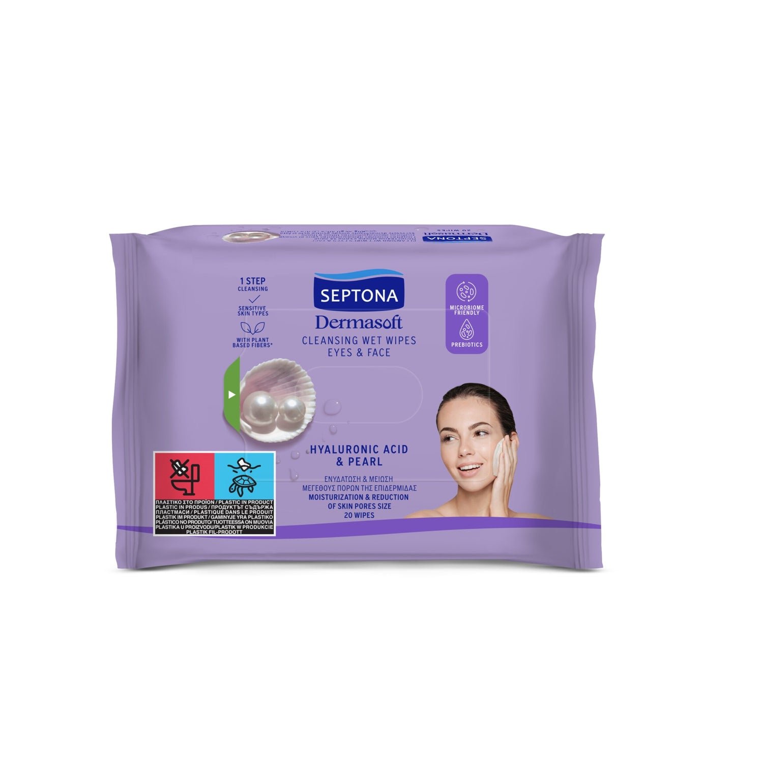 Septona Daily Cleansing Wipes With Hyaluronic Acid& Pearl 20 Pcs مناديل لإزالة المكياج