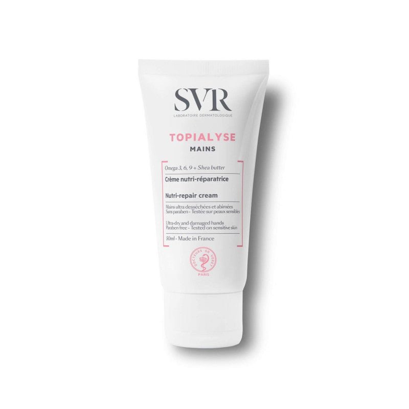 TOPIALYSE MAINS is specially formulated to nourish and repair the most dried out and damaged hands. Its ultra-concentrated formula in fatty phase and shea butter provides an intense nutrition and an immediate comfort. For extremely dry and damaged hands.